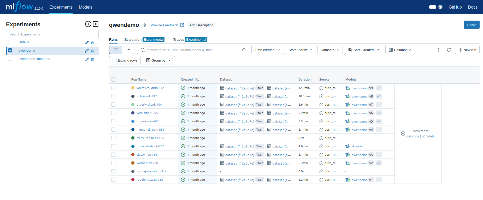 MLFlow propose une suite d'outils permettant de créer un workflow de Machine Learning. Nous nous intéressons au suivi, au registre de modèles et à l'évaluation. Nous l'utiliserons principalement pour comparer les exécutions d'entraînement avec différents jeux de données et paramètres, et pour stocker les modèles de Machine Learning résultants dans un registre.